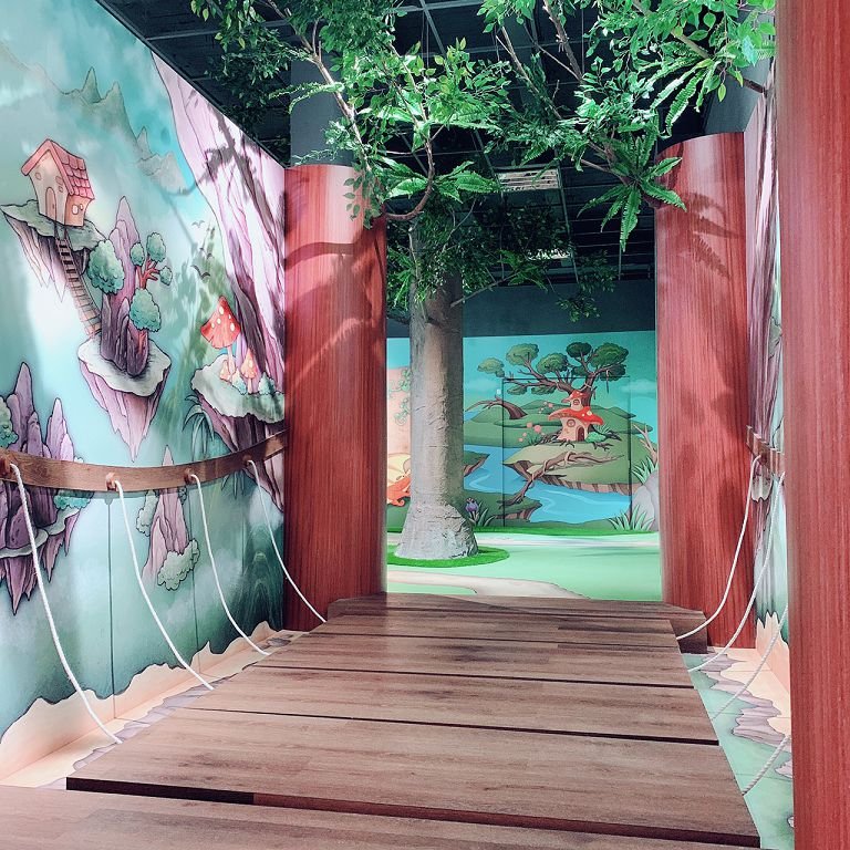 在新開闢的空間中,我們以精靈童畫方式進入印畫森林學院,引導大朋友小朋友輕鬆玩中學。