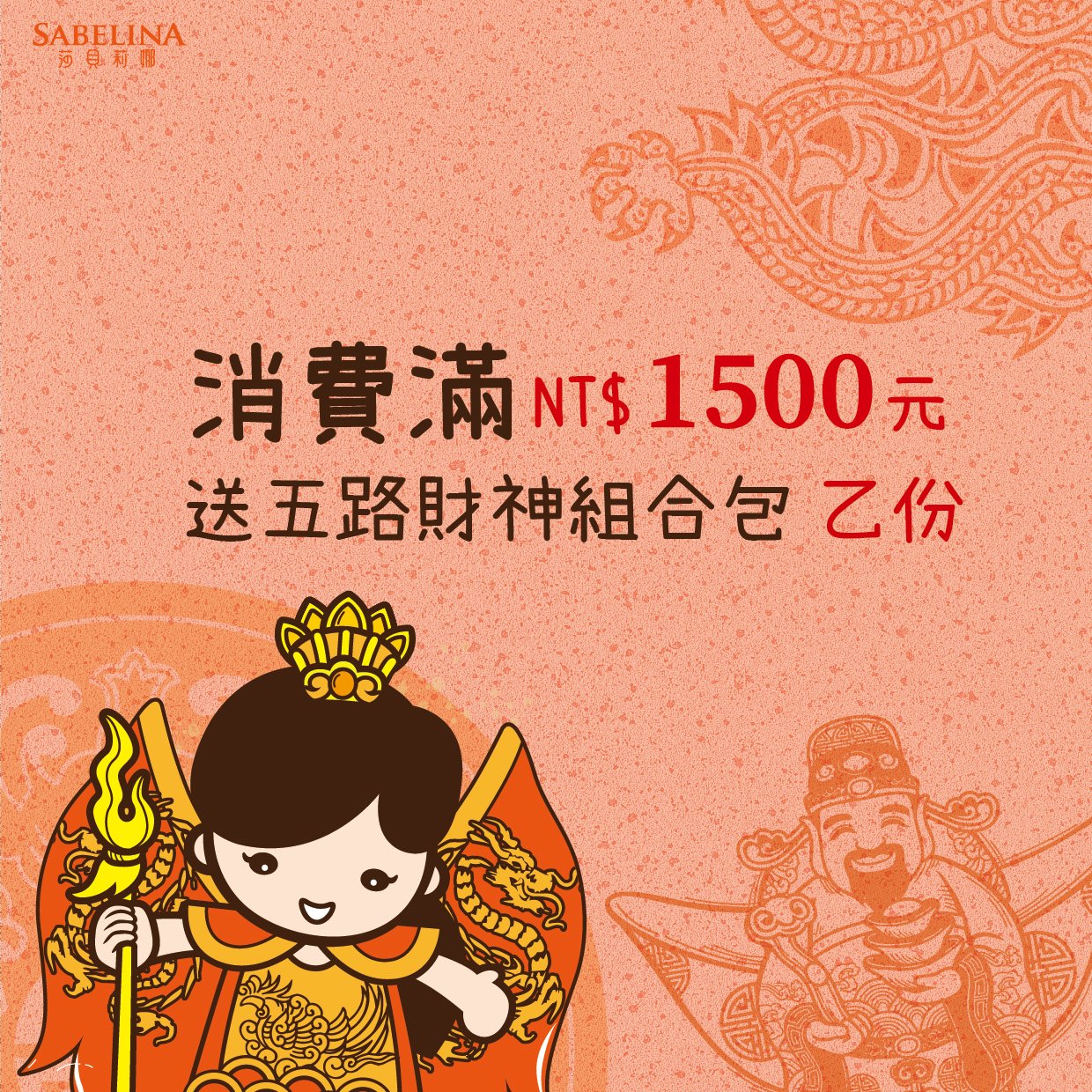 消費滿 NT$1,500 元,即送「五路財神組合包」乙份!