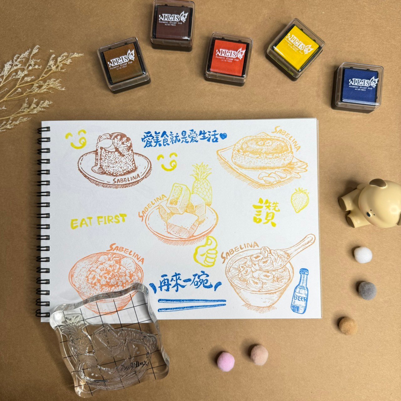 內容物:水晶圖章*1、手把壓板*1、布用印台*6、手帳本*1、木頭相框*1
