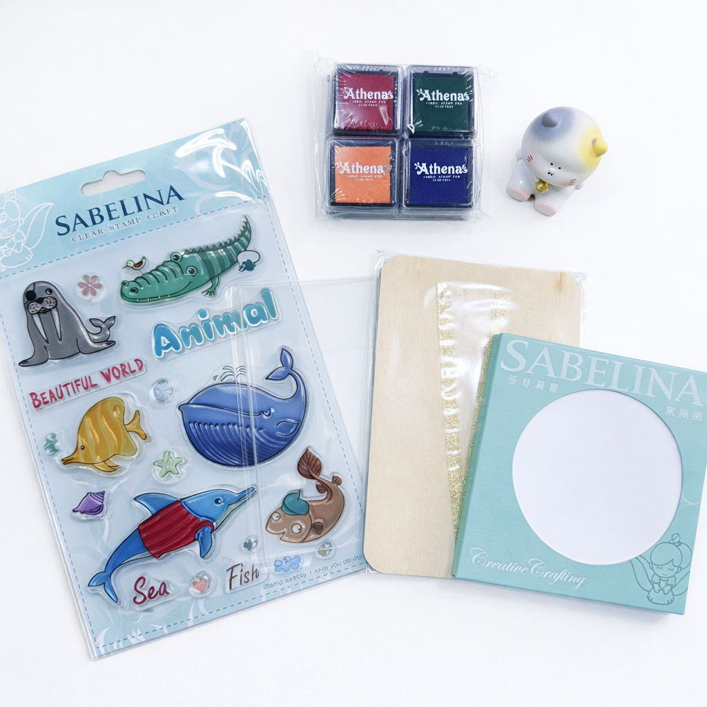 內容物:水晶圖章*1、水晶壓板*1、布用印台*4、圓形陶瓷杯墊*1、造型木卡片*1
