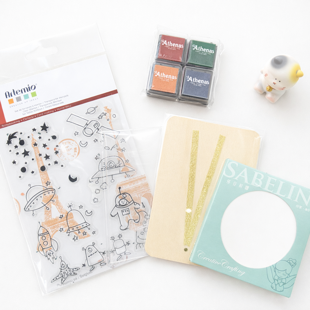 內容物:水晶圖章*1、水晶壓板*1、布用印台*4、圓形陶瓷杯墊*1、造型木卡片*1