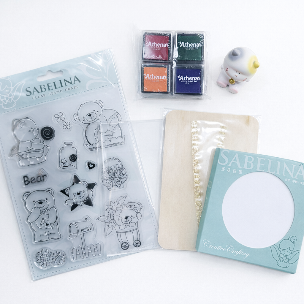 內容物:水晶圖章*1、水晶壓板*1、布用印台*4、圓形陶瓷杯墊*1、造型木卡片*1