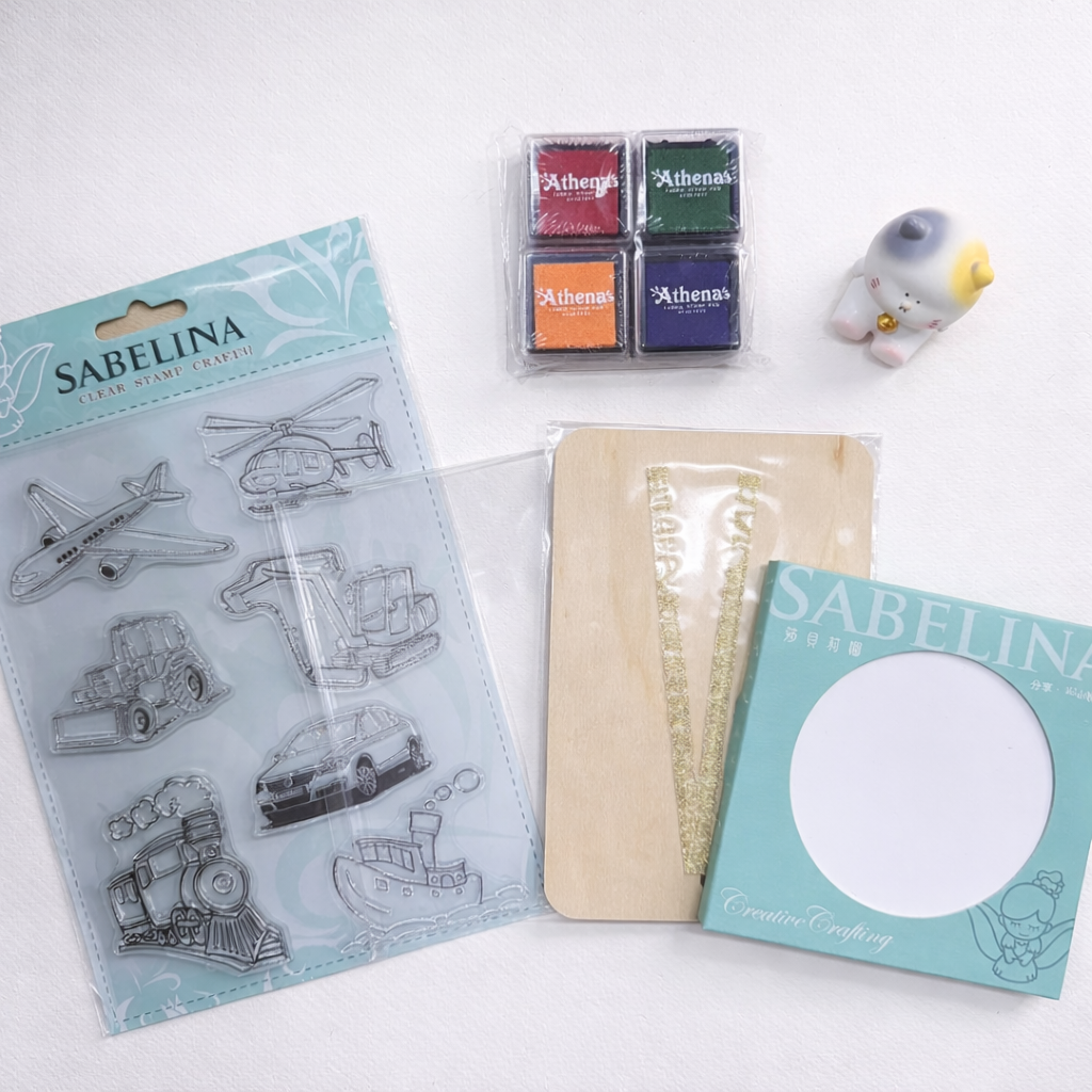 內容物:水晶圖章*1、水晶壓板*1、布用印台*4、圓形陶瓷杯墊*1、造型木卡片*1