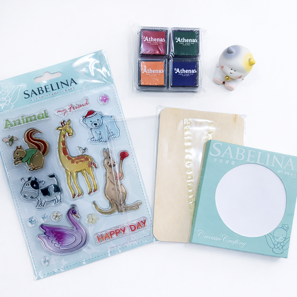 內容物:水晶圖章*1、水晶壓板*1、布用印台*4、圓形陶瓷杯墊*1、造型木卡片*1